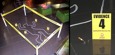 Stiker Anti Merokok - Kalau dilihat iklan ini sangat menarik sekali bukan, dengan menggunakan stiker yang ditempel pada tempat-tempat yang didesain khusus untuk mematikan rokok seperti pada gambar di atas sbelah kanan. kemudian